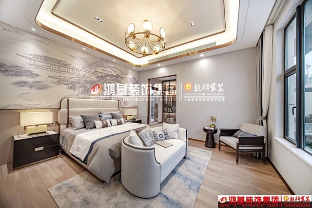 圖3.亮點:空間是包容的,當代人之家已成為各自獨有的精神之地,臥室的自然意蘊更加體現(xiàn)了居者對于新舊東西方文化的糅合認同。大氣的窗戶,讓光得以在空間中肆意流淌,柔和的色彩與材質(zhì)面料的交輝,在基于實用性的基礎上,帶來審美上的多種風格元素的和諧交匯融合。